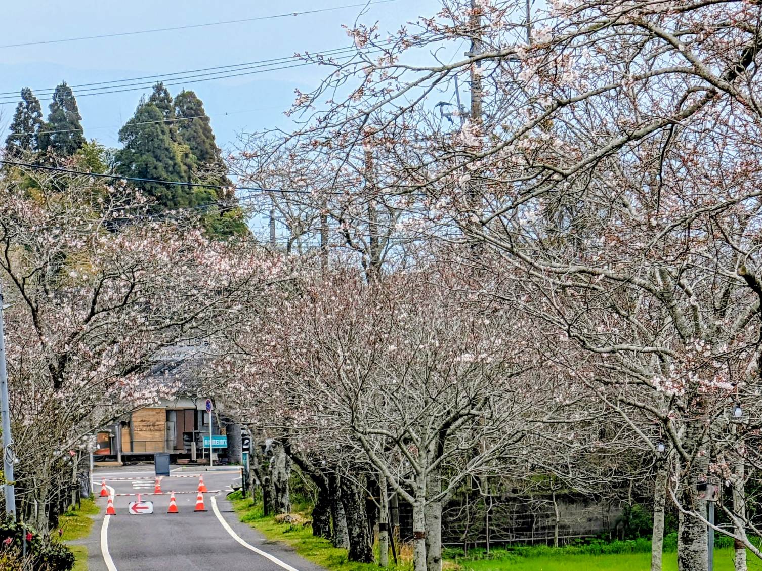 レストランに続く並木道の桜も五分咲きまで進みました。